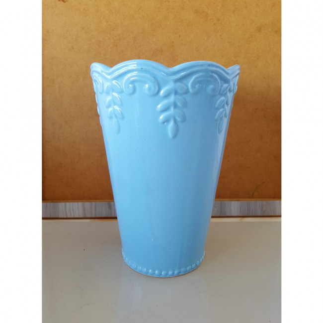 Vaso em cerâmica com detalhes florais na bordaDimensões (cm): 20,5A X 14,5 DCor: Azul ClaroEstoque: 2 Unidades